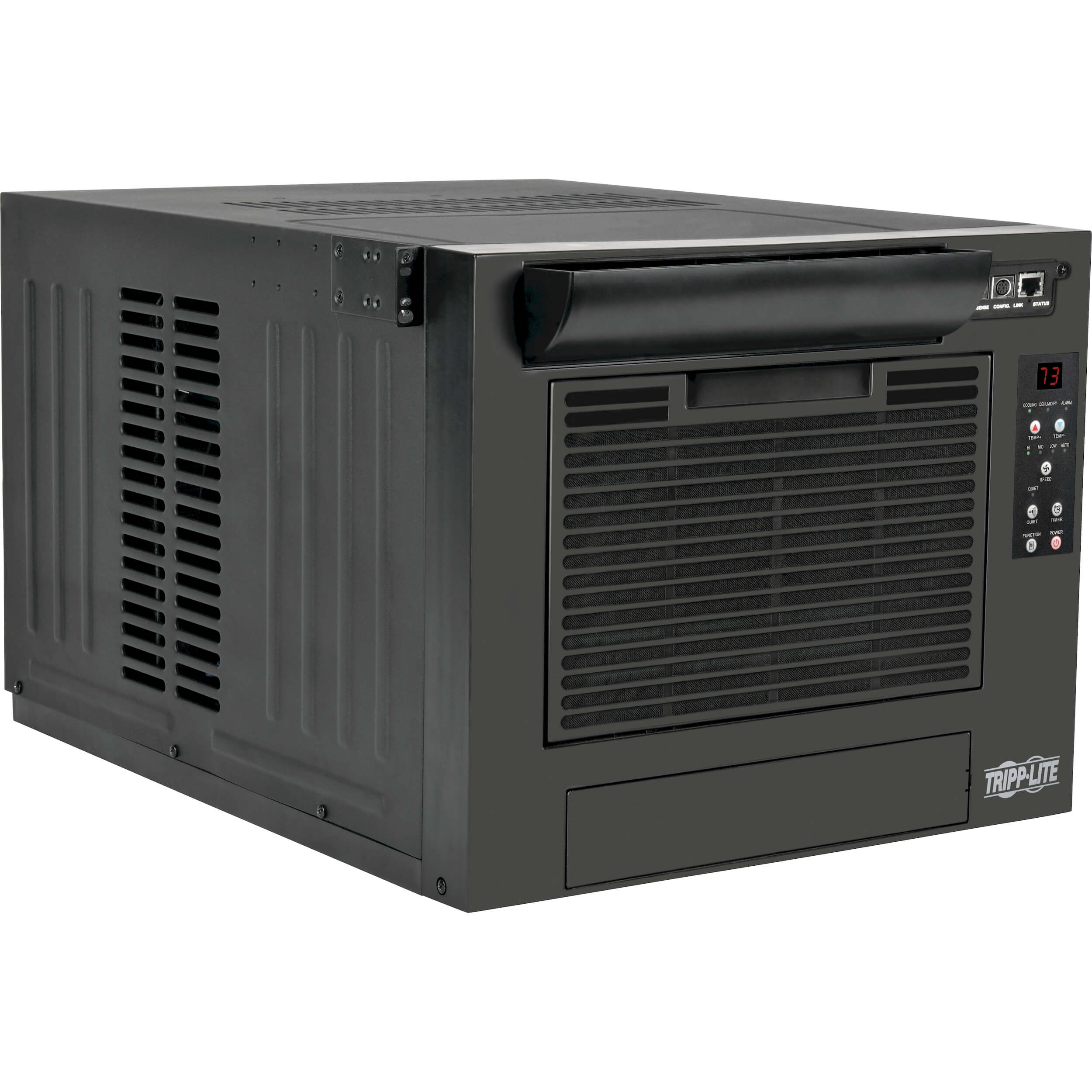 La unidad de aire acondicionado SRCOOL7KRM para Rack de Servidor para Instalación en Rack bombea 7,000 BTU / h (2.0 kW) de potencia de enfriamiento de acoplamiento directo a su equipo de TI para evitar cortes, malos funcionamientos y fallas causadas por sobrecalentamiento. Esta unidad eficiente con la energía, ahorradora de espacio es perfecta para centros de datos, salas de servidores, gabinetes de cableado de redes y otros ambientes con equipo instalado en rack sensible al calor y espacio de piso limitado. El SRCOOL7KRM, autónomo, se instala exactamente como cualquier otro equipo de rack en un espacio de 8U en la parte inferior de un gabinete. Un deflector de aire magnético se fija a la puerta frontal del gabinete para garantizar que el equipo tome aire del SRCOOL7KRM en vez de tomar aire caliente del cuarto. Porque solamente enfría el equipo dentro del gabinete, el SRCOOL7KRM es mucho más eficiente que las soluciones que enfrían un cuarto entero para lograr el mismo resultado. El SRCOOL7KRM filtra el aire, y su evaporador incorporado elimina la condensación, así como la necesidad de un drenaje en el piso o un tanque recolector de agua. El cable de 2.13 m [7 pies] se enchufa en un tomacorrientes estándar de 15A (NEMA 5-15R). La unidad arranca automáticamente después de fallas de energía y usted puede usar el temporizador incorporado para programar el apagado y arranque sin supervisión. El intuitivo panel de control incluye una pantalla digital y LEDs de diagnóstico para comunicar de un vistazo las condiciones de operación. El accesorio opcional de administración remota SRCOOLNET2LX (vendido por separado) le permite monitorear temperaturas, recibir alertas, revisar registros y controlar parámetros sobre la red Ethernet desde cualquier ubicación mediante SNMP, Web, SSH o telnet. El SRCOOLNET2LX incluye además un sensor de temperatura y humedad ENVIROSENSE® que le permite enlazar la salida del enfriamiento con lecturas de temperatura alejadas hasta a 3.66 m [12 pies] de distancia.